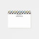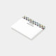 A cool pattern made up of retro 1970’s design inspired sunglasses in primary colours of red, blue and yellow with black accents embellishes the top edge of this personalised pad of sticky notes.