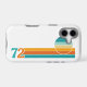 Retro vintage style sunset on extended horizontal stripe design with 72 (1972) typography in the style of the 1970s.