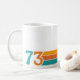 Retro vintage style sunset on extended horizontal stripe design with 73 (1973) typography in the style of the 1970s.