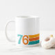 Retro vintage style sunset on extended horizontal stripe design with 76 (1976) typography in the style of the 1970s.