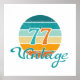 Retro vintage style sunset with 77 (1977) typography centre in the style of the 1970s and Vintage in a scripted typographic design below in a distressed effect.