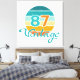 Retro vintage style sunset with 87 (1987) typography center in the style of the 1980s and Vintage in a scripted typographic design below in a distressed effect.