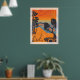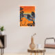 This poster showcases a retro sunset forest landscape design with bold tree silhouettes and vibrant orange and blue tones. The abstract art style blends modern boho with vintage flair, making it a striking piece for home, office, or studio decor. Perfect for adding colour and creativity to any wall, this nature-inspired artwork is ideal for art lovers and those who enjoy unique, eye-catching prints.