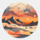 Retro Sunset Mountain Landscape Classic Round Sticker