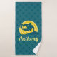 Retro Sunset Skateboarding Theme Custom Name Teal Bath Towel Set