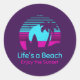 Retro Sunset Surfboard Palm Tree Life's a Beach Classic Round Sticker