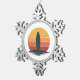 Retro Sunset Surfboard Snowflake Pewter Christmas Ornament