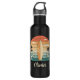 This personalised water bottle features featuring a cool surfboard, rolling retro-style waves, and minimalist palm tree silhouettes. This design blends bold vintage hues for a nostalgic surf aesthetic.