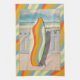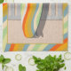 Retro Surfboard Pelican Wavy Stripe Art Tea Towel