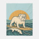 Retro Surfer Dog Art Blue Coastal Surfing Bulldog Fleece Blanket
