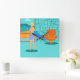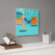 Every day can be a day at the beach with this Retro Surfer Dude Acrylic Wall Clock. The 1960's style, minimalist art design features a sun-kissed, blonde, surfer dude all ready to catch a wave. Our fit surfer is gazing out on the ocean through the sliding glass doors of his beachfront home. He is standing in his aqua coloured living room. We can see an aqua and turquoise, stone wall and mid century modern, orange chair. On the opposite side of the glass door, we can see a patio. Beyond that, there is a golden, sandy beach, swaying palm tree, sparkling, peacock blue ocean, and an aqua sky. In the distance, we can see a teal volcanic island, which is dormant for the time being. Surfer Dude is holding a blue surfboard and wearing blue, tiki patterned board shorts. Catch some waves and share some love with this kitschy summer design!