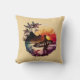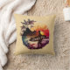 This throw pillow is perfect for a surfer. It is in a retro style featuring a beach scene at sunset of a surfer with surfboard in the foreground. The text on the surfboard is customisable with your own text, name or can be left as is.