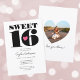 Get ready to throw the ultimate Sweet 16 bash with a Retro Chic party invitation! Perfect for the birthday star who loves vintage vibes and bold style. The design features 'Sweet 16' in stylish typography, overlaid with a love heart. Personalise the template with the teen's name and event information. The reverse side showcases a favourite photo in a heart-shaped frame, along with a custom message in a trendy script. Printed colours: pink, white and black.