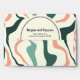 The wedding envelope from the "Retro Swirl Arch" series presents a charming aesthetic with its swirling design of mint green and pink on a creamy backdrop. The graceful arch window on the flap serves as a customisable label, adding a personalised touch to your wedding correspondence. This design combines a retro vibe with modern chic, perfect for setting the tone for your special day.