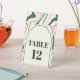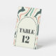 The table number pedestal sign from the "Retro Swirl Arch" collection showcases a smooth combination of mint, green and pink swirls on a creamy background. The arched window design framing the table number adds a touch of vintage elegance to your wedding décor, guiding guests to their seats in style.