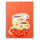 A retro cute, vintage image illustration of three retro style old fashioned tea cups stacked on top of one another against a bright orange on trend background. This whimsical design is for tea and coffee lovers everywhere.
