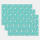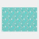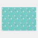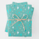 Wrapping paper sheets with a retro star pattern in teal and white on a light teal background.