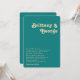 This retro teal rounded corner traditional wedding invitation is perfect for your simple vintage, colourful tropical boho summer wedding. Its unique bohemian mid-century font gives this design a classic minimalist groovy hippie vibe. If you're looking for a design that features bright, bold colours for your creative 70's beach wedding, then this product, and its coordinating wedding collection, are precisely what you're looking for. Feel free to change the colour add your own artwork, graphics, or photos. If you have any questions about the design of this product, please feel free to reach out to us!