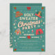 Retro Teal Ugly Sweater Christmas Party Invitation