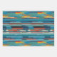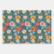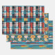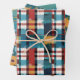 Retro Teals Plaid Floral and Line Set of 3 Wrapping Paper Sheet