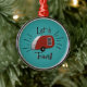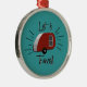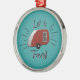 The retro design on this ornament is reminiscent of the print advertisements from the 50’s and early 60’s with a teardrop camper in vintage red and silver and the phrase “Let’s travel!” From my original digitally created image.