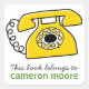 Fun bookplate stickers / book labels for kids featuring a yellow, retro telephone drawing. Customisable text "this book belongs to". Personalise the name. Cute design for children, ideal for labelling school books and other belongings. Turn into general property labels by changing the text.