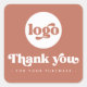 Square business thank you stickers featuring the text "Thank you" in a retro style font and customisable text "for your purchase". White (or custom colour) text on a terracotta brown background. Upload your logo. You can change colours, move and resize elements with the design tool.