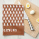 Retro terracotta Christmas Modern Minimal Unique personalised family holiday Kitchen towel design With modern hand drawn text and trees.