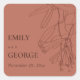 RETRO TERRACOTTA RUST LINE DRAWING FLORAL WEDDING SQUARE STICKER
