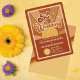 This fun and groovy wedding invitation is perfect for the summer season. It features a retro sun design with 70's typography. The colour scheme includes terracotta, orange, mustard-yellow, and beige. It's playful, unique, boho, and hippie. It's the perfect design to spark jovial vibes inside each heart of your guests.