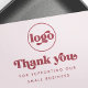 Rubber stamp featuring your custom logo and the text "Thank you" in a bold, retro style font, and customisable text below "for supporting our small business".