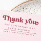 Rubber stamp featuring the text "Thank you" in a bold, retro style font, and customisable text below "for supporting our small business". Add a website address or other custom text.