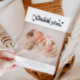 Retro and minimalistic birth announcement card featuring text at the top that says "thank you" in bold swirly font with stars.