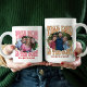 Retro goat mug for dad with custom photo. Your photo will be displayed in a wavy edge sticker shape and framed with "dad is the goat". lettered in retro typography and decorated with love hearts. Personalise with the name(s) of the kid or children or any text you like. Use the same photo front and back or, a different photo for each side. Feel free to customise the colour palette in the design tool. Cool and useful gift for a dad who's the 'Greatest Of All Time' for holiday, birthday, mother's day or just because!