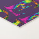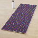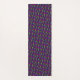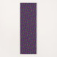 Cool yoga mat features retro and groovy tie dye stacked "love" letters pattern on purple background.
