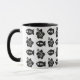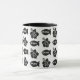 Tiki black and white pattern with flowers and fish motif on funky coffee mug.