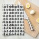 Tiki black and white pattern with flowers and fish motif on kitchen towel.