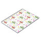 This product features a pattern which incorporates illustrations of retro vintage inspired camper trailers, pink flamingos, bees, and flowers.