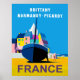 Vintage style travel poster for Eastern, seaside provinces in France. Brittany, Normandy and Picardy.