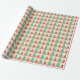 Fun and festive retro mid-century Christmas wrap features rows of turquoise and red holiday tree silhouettes on a vintage beige background