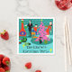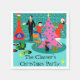These customisable Retro Family Trimming the Christmas Tree Disposable Napkins contain every holiday tradition but the fruitcake. A 1960's cartoon family is at home in their mid century modern living room. There is a turquoise and teal brick wall and a red, cone fireplace with a roaring fire. Dad is wearing a black suit and red tie. He is hanging green Christmas stockings on the mod chimney with care. Next to dad, Junior is perched precariously on an orange chair. Whoa! Easy there, Junior! He is reaching out to put an ornament on a kitchy, pink, Christmas tree that is already decked out with teal ornaments and a yellow star. On the opposite side of the tree, Mum is holding a festively wrapped present. Hey, no shaking allowed! Mum is wearing a bright red wiggle dress with white trim. She is also wearing a Santa hat. Beneath the tree, there is a sleek black cat wearing a red bow. On the floor, there is a green and black record player surrounded by colourful vinyl albums. You just know that the family is singing along with their favourite Christmas carols while they are decking the halls. Simply replace the existing text with your own for personalised party supplies that will have your guests talking!