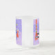 This Retro Tropical Christmas Party Frosted Glass Mug is festive enough to brighten anyone's holiday outlook! The cartoon design features the type of wildly sophisticated holiday party that is normally only seen in Christmas movies from the 1960s. There is a mid century modern living room filled with partygoers enjoying the swanky, purple decor. A lovely woman in a French maid's uniform is carrying a tray of martinis. She is standing beside a red, cone fireplace with a roaring fire. Three green stockings are hung by the mod chimney with care. In the centre of the room, an attractive couple is lounging in orange egg chairs. The woman is wearing a festive, green dress. The man is wearing a black suit with a red tie. They are each holding a martini. Another couple is getting cosy beneath a dangling, yellow, Sputnik chandelier. The distinguished, grey haired gentleman is wearing a blue suit, light blue shirt and red tie. He is also wearing a Santa hat and holding a martini in each hand, showing the world that his partying days are far from over. His companion is a shapely blonde in a stunning red dress. Mr. Distinguished had better look out because she is holding a sprig of mistletoe in her hand. At the front of the room, there is a kitschy, pink Christmas tree, complete with teal ornaments and a yellow star. Behind this scene, we can see through floor to ceiling glass walls. The outdoor scene features a round, turquoise swimming pool. We can see the purple silhouette of a woman dipping her legs into the water. Between purple, stone walls, there are silhouettes of palm trees decorated with ornaments and Christmas lights. The silhouettes of dancing and talking partygoers are also visible. If there's one thing this proves, it's that, while people who live in glass houses shouldn't throw stones, they should definitely throw parties!