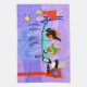 This Retro Tropical Cocktail Party Kitchen Towel is intoxicating in its detail. The cartoon design features the type of wildly sophisticated cocktail party that is normally only seen in movies from the 1960s. There is a mid century modern living room filled with partygoers enjoying the swanky, purple decor. A lovely woman in a French maid's uniform is carrying a tray of martinis. She is standing beside a red, cone fireplace with a roaring fire. In the centre of the room, an attractive couple is lounging in orange egg chairs. The woman is wearing a bright, green dress. The man is wearing a black suit with a red tie. They are each holding a martini. Another couple is getting cosy beneath a dangling, yellow, Sputnik chandelier. The distinguished, white haired gentleman is wearing a blue suit, light blue shirt and red tie. He is also holding a martini in each hand, showing the world that his partying days are far from over. His companion is a shapely blonde in a stunning red dress. Behind this scene, we can see through floor to ceiling glass walls. The outdoor scene features a round, turquoise swimming pool. We can see the purple silhouette of a woman dipping her legs into the water. Between purple, stone walls, there are silhouettes of palm trees. The silhouettes of dancing and talking partygoers are also visible. If there's one thing this proves, it's that, while people who live in glass houses shouldn't throw stones, they should definitely throw parties!