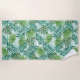 Retro Tropical Green Palm Leaves Pattern Beach Towel