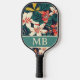 Retro Tropical Leaves Flowers Monogram Initials Pickleball Paddle