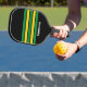 Retro Tropical Palm Across Striping with Name Pickleball Paddle