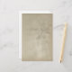 One lovely tropical palm tree runs up along side of this grungy paper stationery.
