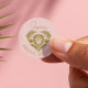 The sticker is made on wonderful paper and had no problem sticking to the bag that I purchased to put it on. I wanted to find a design that would be cute for the bride and groom and this one fit the bill as it has cute "bees" buzzing around and the wedding was taking place in a town called "Bee Cave". The packaging was great and protected the stickers. The website is easy to navigate and there are so many color choices. I had no problem finding a color that the bride was using on everything else selected. The design was adorable and there were many to choose from. You can make the figure as larger or smaller and you can place the photo and writting whereever you want to in the sticker. The printing is fabulous..better than expected.