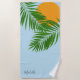 Retro Tropical Sun Palm Leaves Blue Minimal Name Beach Towel