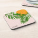 This coaster features an elegant minimalist design with a tropical sunset behind palm leaves on an earthy soft pink background. Personalise by adding your name in an elegant whimsically font.